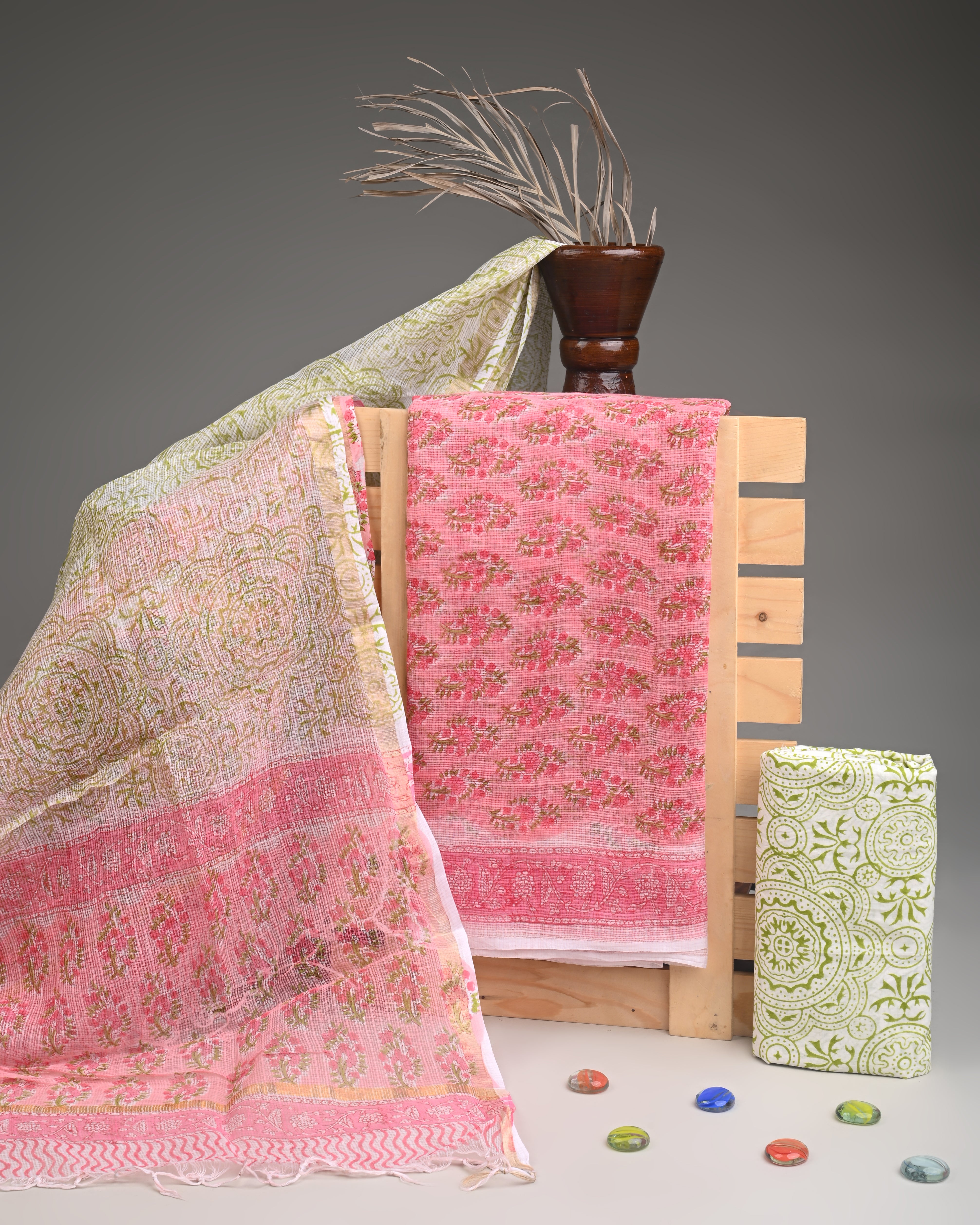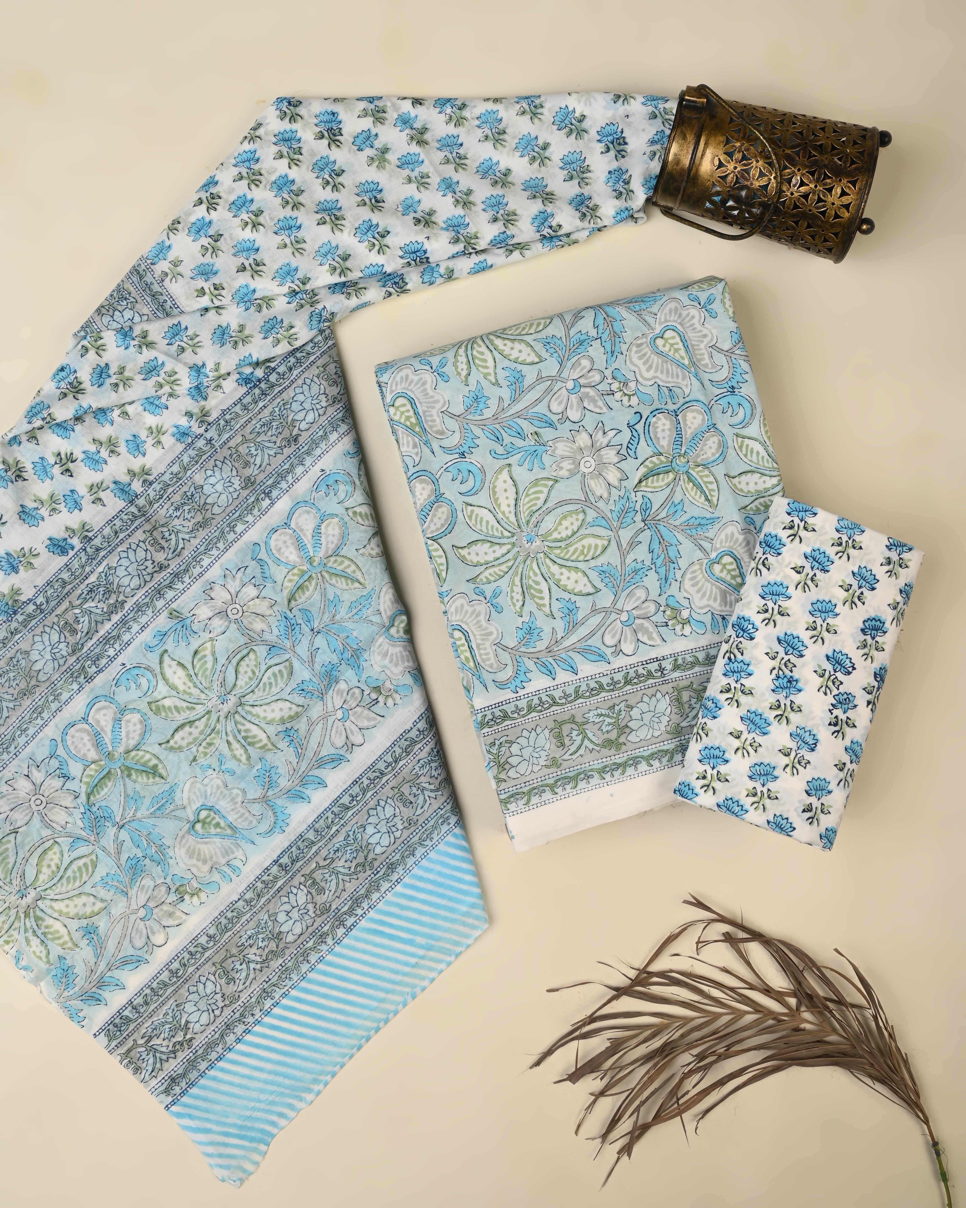 Each fabric is carefully selected and adorned with authentic hand block prints, celebrating the artistry of Indian textile heritage.