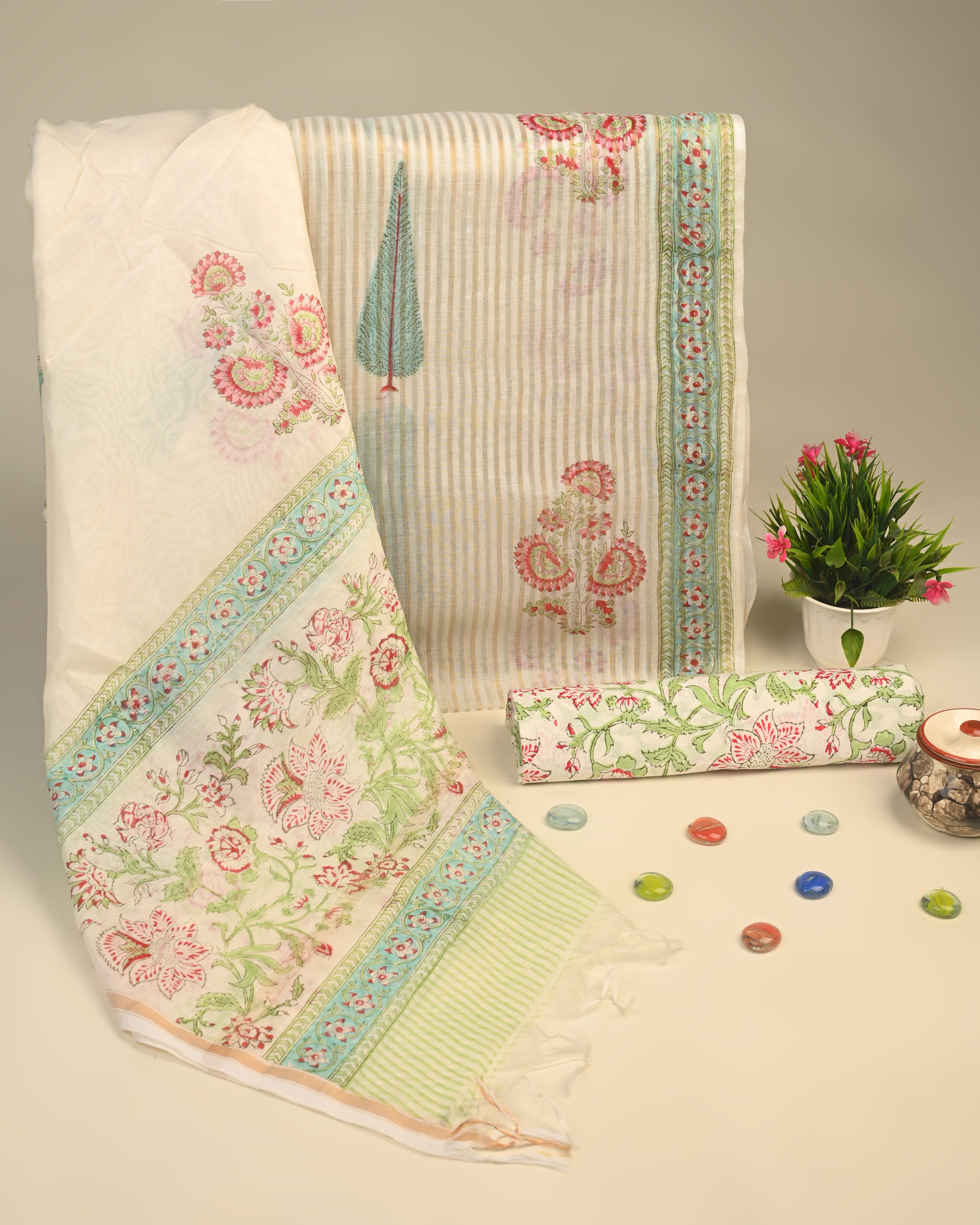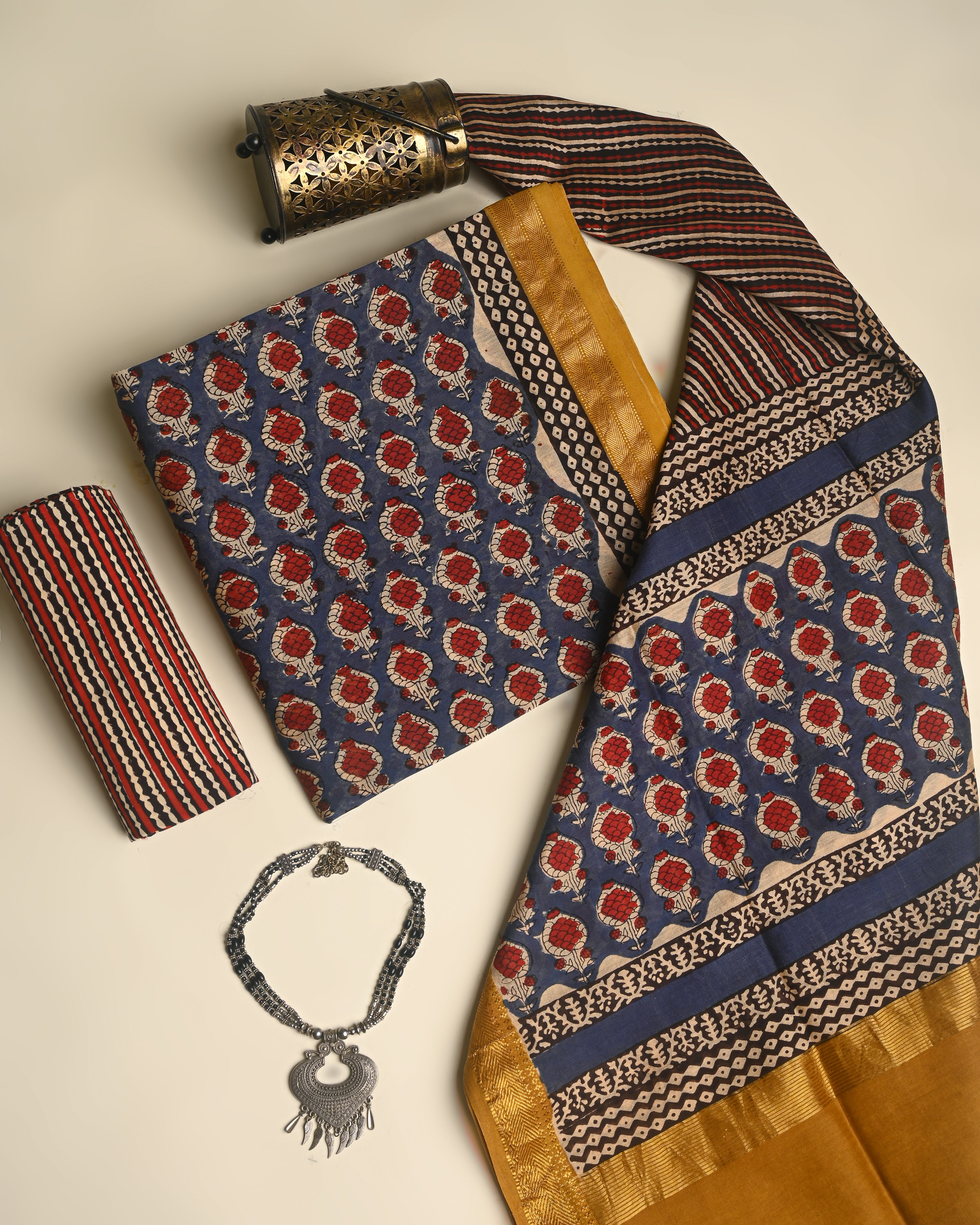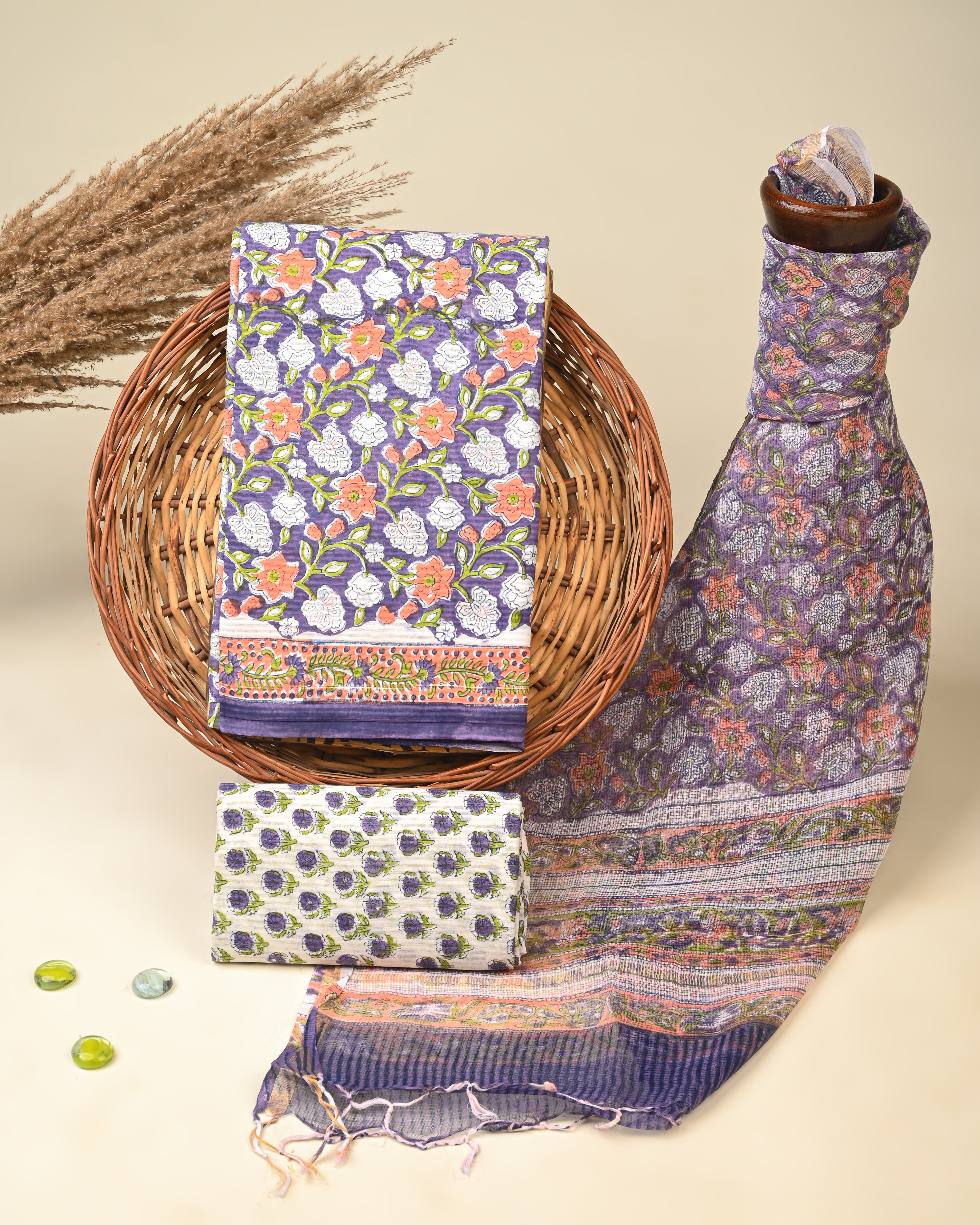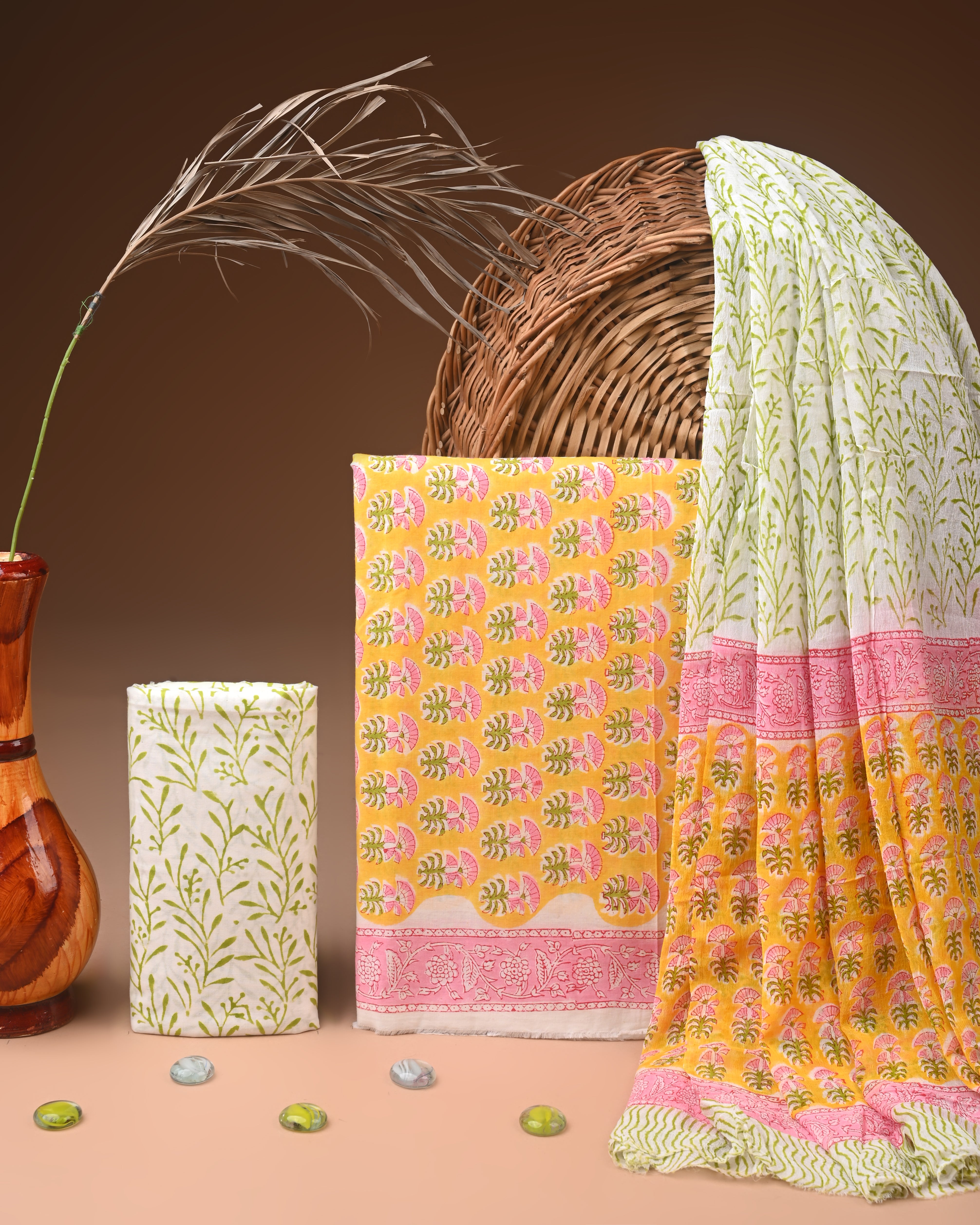 Each fabric is carefully selected and adorned with authentic hand block prints, celebrating the artistry of Indian textile heritage.